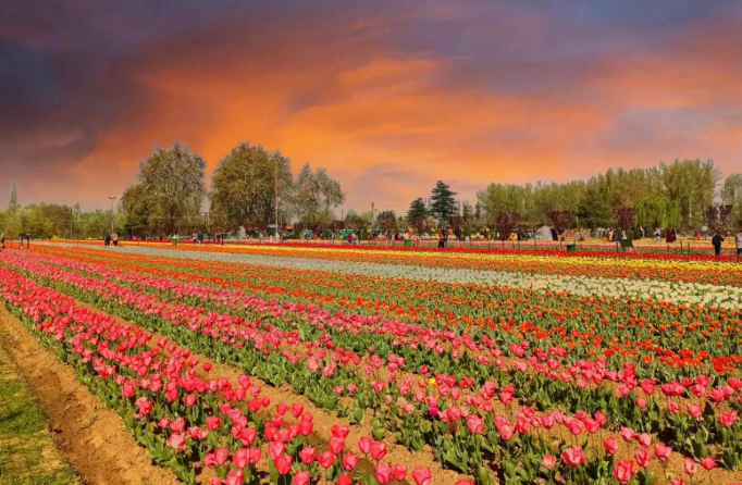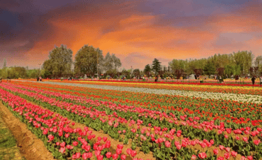Tulip Garden, officially known as Indira Gandhi Memorial Tulip Garden, is the largest tulip garden in Asia, and it’s a vibrant spectacle of colors and beauty located in Srinagar, Kashmir. Nestled at the foothills of the Zabarwan Range with a stunning view of Dal Lake, the garden spans over 30 hectares and features millions of tulip bulbs blooming in a riot of colors each spring.The garden is meticulously laid out in terraces, with a diverse collection of tulips in various hues, creating a mesmerizing and picturesque landscape. In addition to tulips, the garden also showcases other beautiful flowers such as daffodils, hyacinths, and ranunculus.